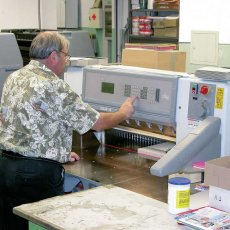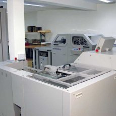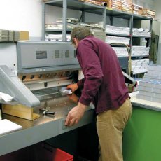 Wir haben diverse, auch computergesteuerte „Helfer”, um dies alles schnell, gut, sorgfältig, einfach, genau und kostengünstig leisten zu können: Ein programmierbares Schneidesystem; eine Broschürenfertigungsstraße mit Sattelheftung und Dreiseitenschneider, die auch Einzelblätter zusammentragen kann; zwei Falzanlagen mit bis zu 6 Taschen (Parallel-, Altar-, Kreuzbruch) sowie Ausrüstung für Kleinstfalzungen (Beipackzettel); unsere Buchdruckmaschinen sowie weitere Kleinmaschinen für diverse Arbeiten.