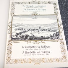 Schon seit den 80er-Jahren erfolgreich von uns veröffentlicht ist die Trompetergeschichte in Kurzfassung in einer rein deutschen Sprachversion und in einer sorgfältig und sehr liebevoll übersetzten mehrsprachigen Version (deutsch, englisch, französisch, italienisch). Sie wurde zusammengestellt und verfasst von Franz Xaver Schmerbeck und ist ebenfalls mit goldumrandeten Xylographien des Anton von Werner prachtvoll illustriert.
